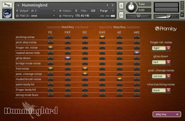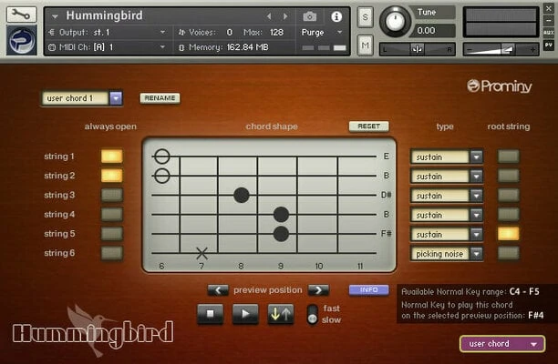 Ultra Real-sounding Virtual Acoustic Guitar – The true sound of Gibson 1963 Hummingbird includes approx. 80GB, 89000 samples. With Hummingbird SPI, you can play ultra realistic acoustic guitar performance in real-time. You can access various playing techniques instantly without stopping your performance and create convincing guitar tracks very quickly.